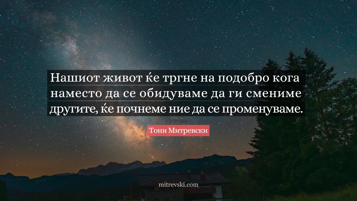 Нашиот живот ќе тргне на подобро кога наместо да се обидуваме да ги смениме другите, ќе почнеме ние да се променуваме.